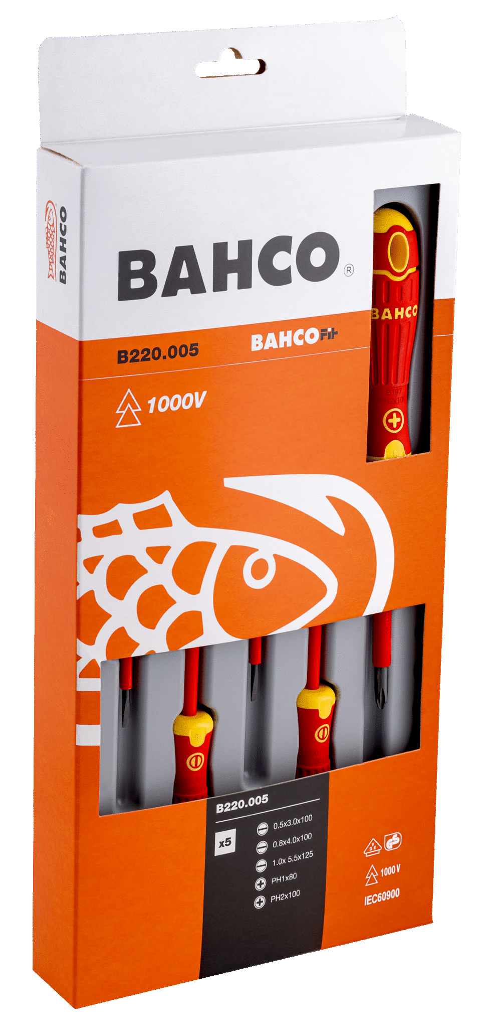 BAHCO Zestaw 5 wkrętaków izolowanych BahcoFit. Do śrub prostych i Phillips