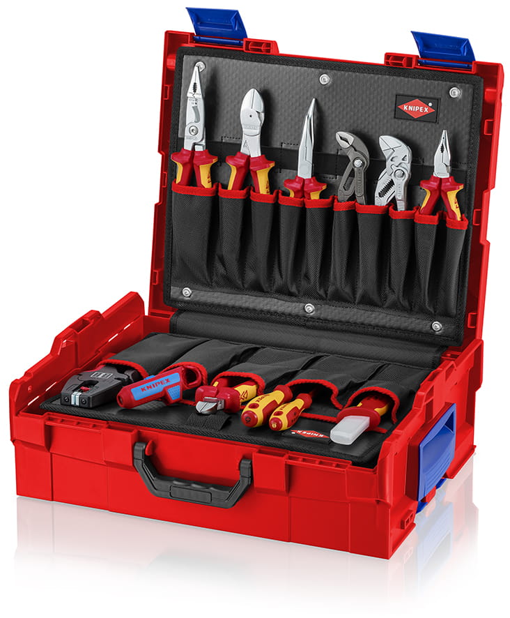 - Wyposażona w 14 narzędzi KNIPEX, łącznie 63 markowych narzędzi, częściowo przetestowane przez VDE zgodnie z normą DIN EN 60900