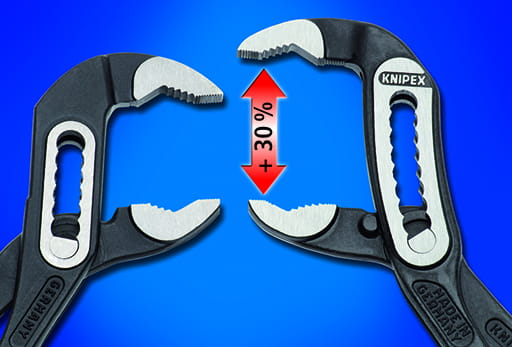 Większa efektywność i komfort obsługi w porównaniu ze zwykłymi szczypcami do rur o takiej samej długości: 9-stopniowy mechanizm zapadowy zwiększa efektywność chwytania o 30%