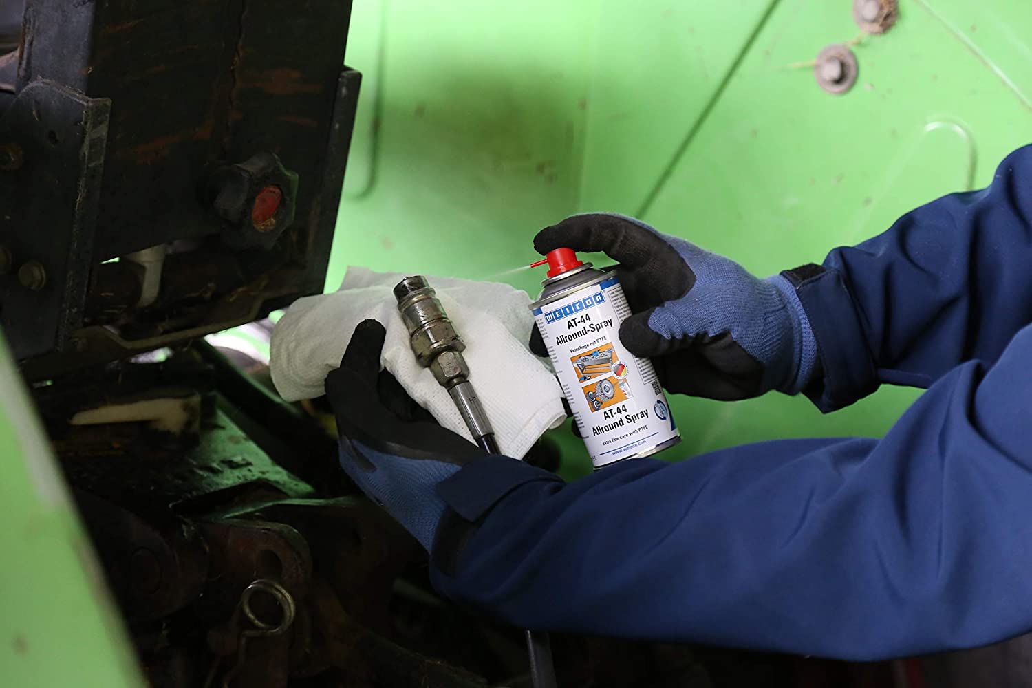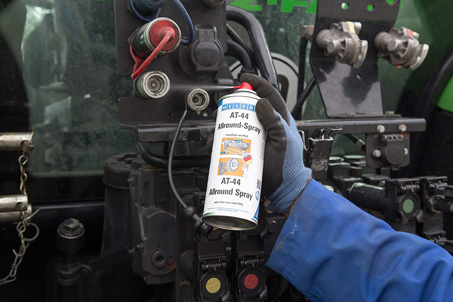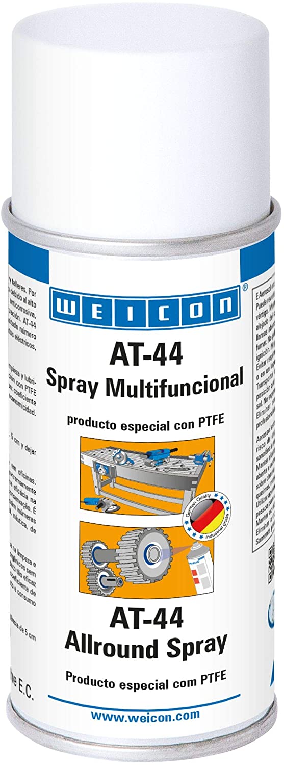 - Spray uniwersalny Weicon AT-44 z teflonem® znajduje zastosowanie w warsztatach i wszystkich obszarach przemysłu. Dzięki specjalnej formule (niski współczynnik tarcia poprzez wysoką zawartość teflonu) oraz doskonałym właściwościom penetrującym, jeden produkt odpowiada za ochronę przeciwkorozyjną, czyszczenie, wypieranie wody, smarowanie i konserwację.