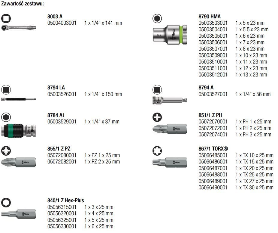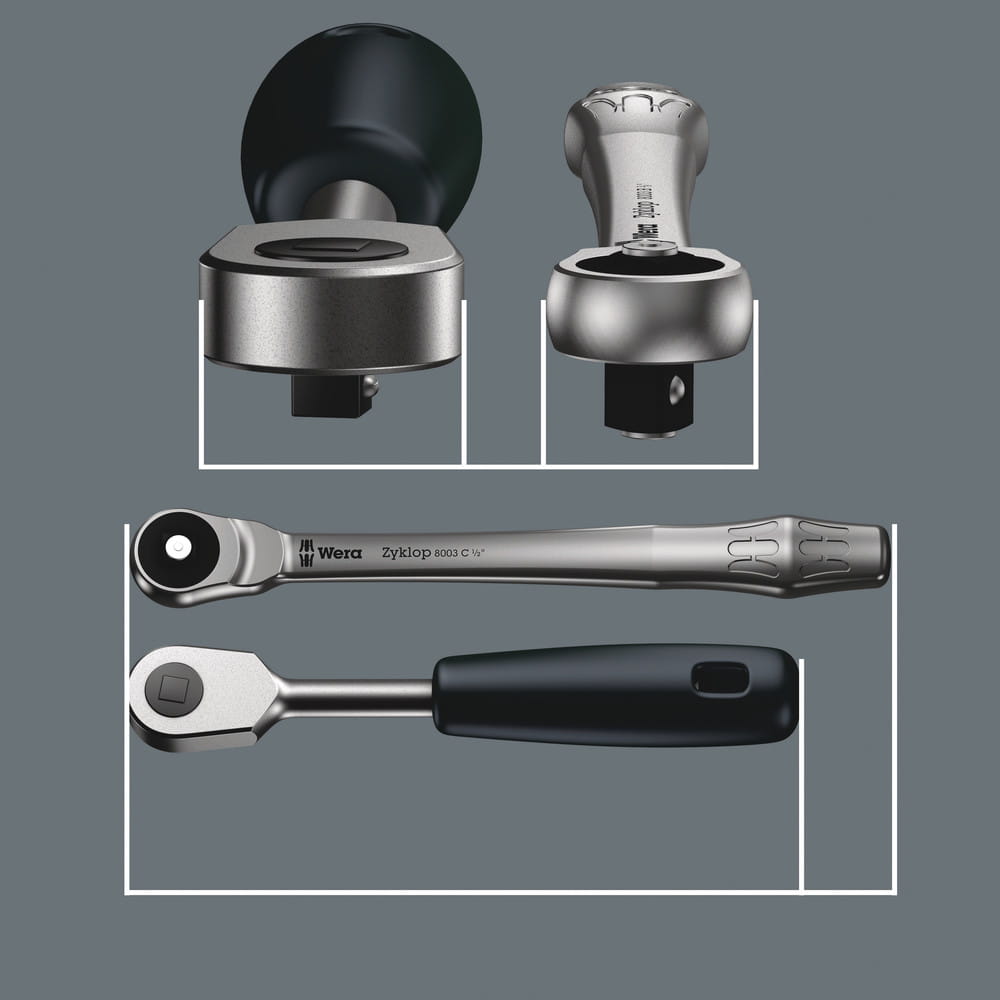 Wera 05004017001 Grzechotka Zyklop Metal z przekładanym zabierakiem 1/4" w zestawie metrycznym